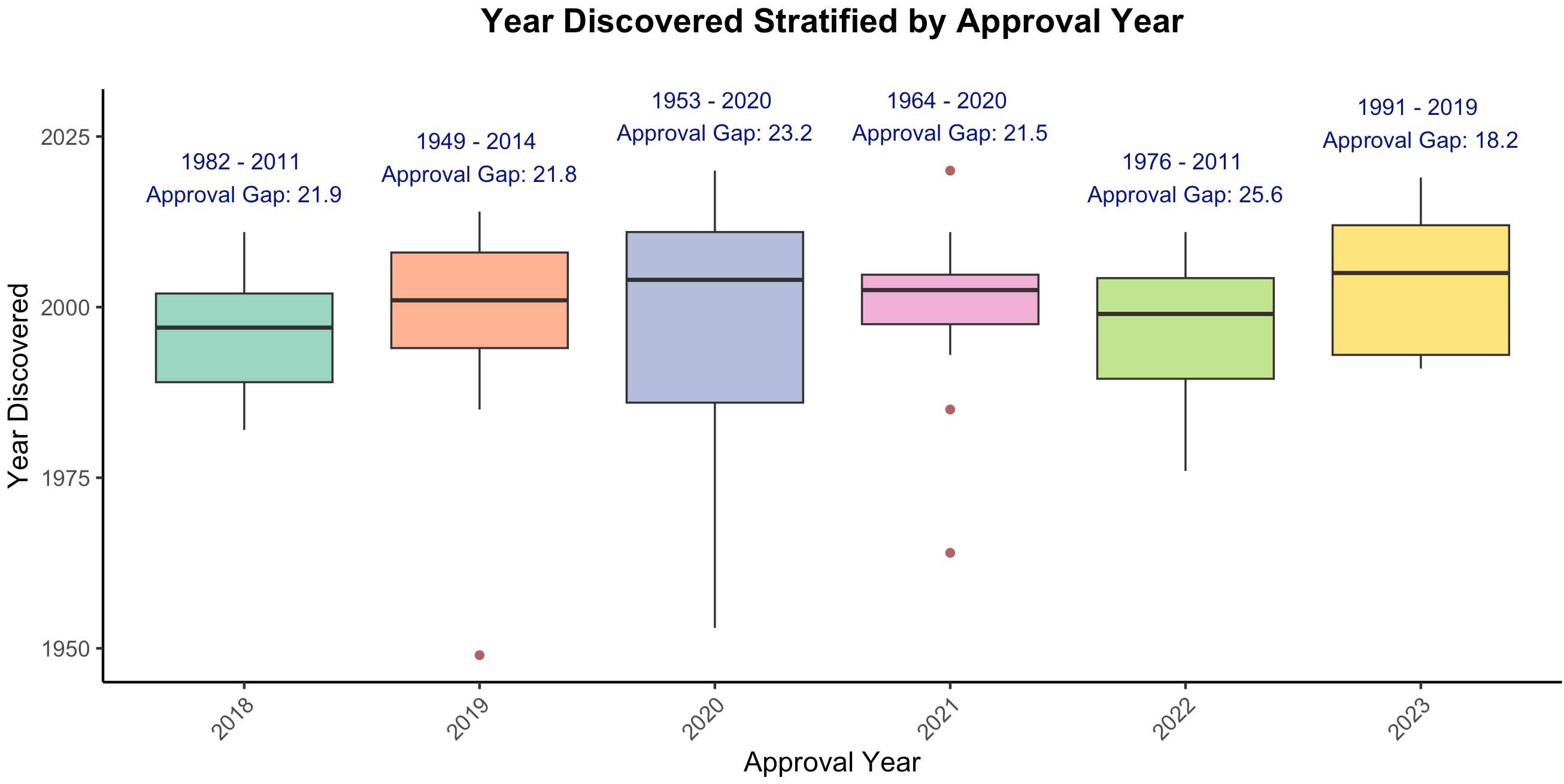 There were 37 primary, 7 secondary, and 30 tertiary omics level targets, and 1 drug (Luspatercept) which we are still unsure of the mechanism. These medicines were approved on average 20 years after their target was discovered.