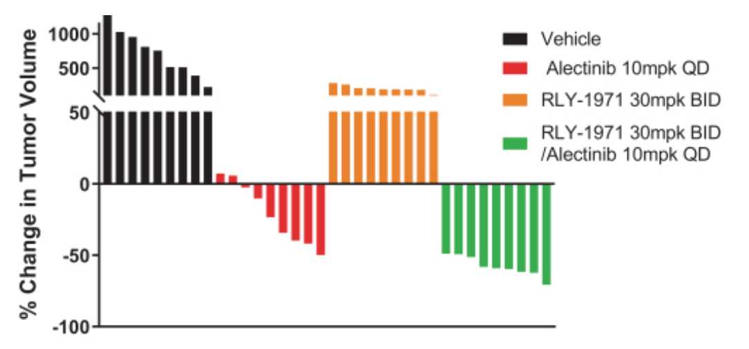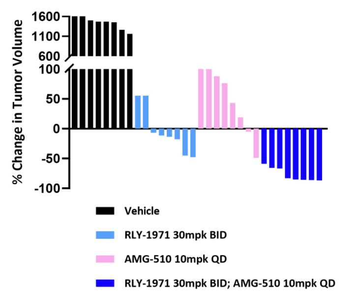 The current development plan is a monotherapy Phase I trial to assess dosing considerations, and subsequent combination trials with other targeted agents, the soonest of which will be with Genentech. Genentech also announced in December 2020, a worldwide license and collaboration agreement for this drug in which Relay got $75 M up front, with $25 M in near term and $695 M in long term milestones.