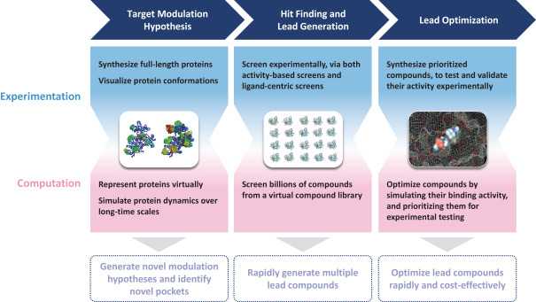 Soon after, their scientists use a bunch of different screening techniques including cloud based virtual screens and a variety of physiologically relevant activity-based and ligand-centric in vitro screens to find hits.